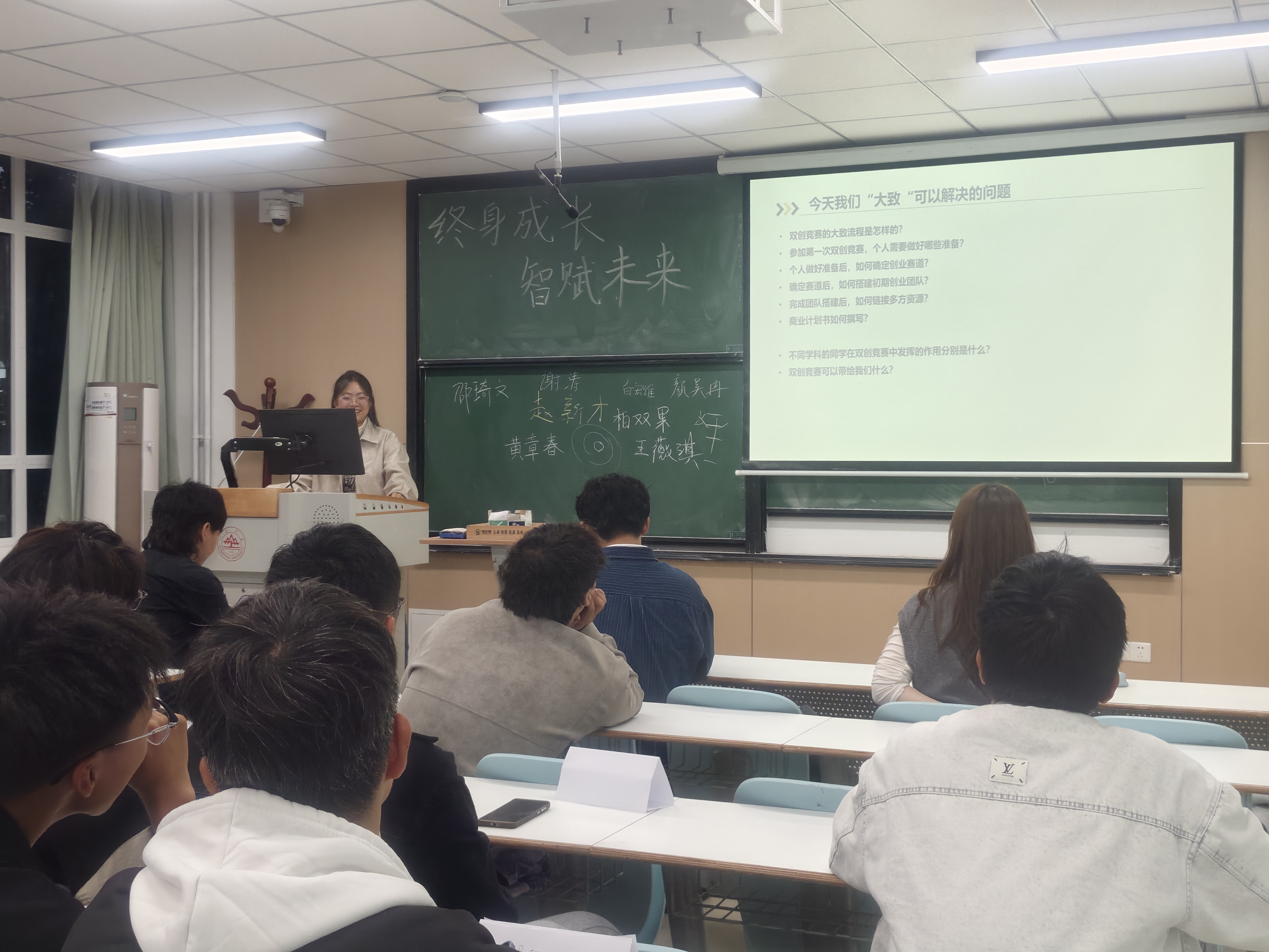2024级智管实验班以“终身成长,智赋未来”为主题、“智能管理赋能个人发展”为核心,特别邀请2025级智管实验班班主任包春兵老师为同学们带来一场兼具实用性与启发性的经验交流。包老师以“过来人”的视角,结合自身求学、成长中遇到的典型问题,用真实案例拆解问题背后的核心矛盾,指导同学们今后的发展方向。本一党支部组织委员张奕轩作为分享嘉宾,以“亲历者”身份,将理论与实践紧密结合,分享专业学习方法、竞赛备赛经验,在场同学则就学业规划、职业发展等问题向研究生学姐积极提问,现场互动频繁。