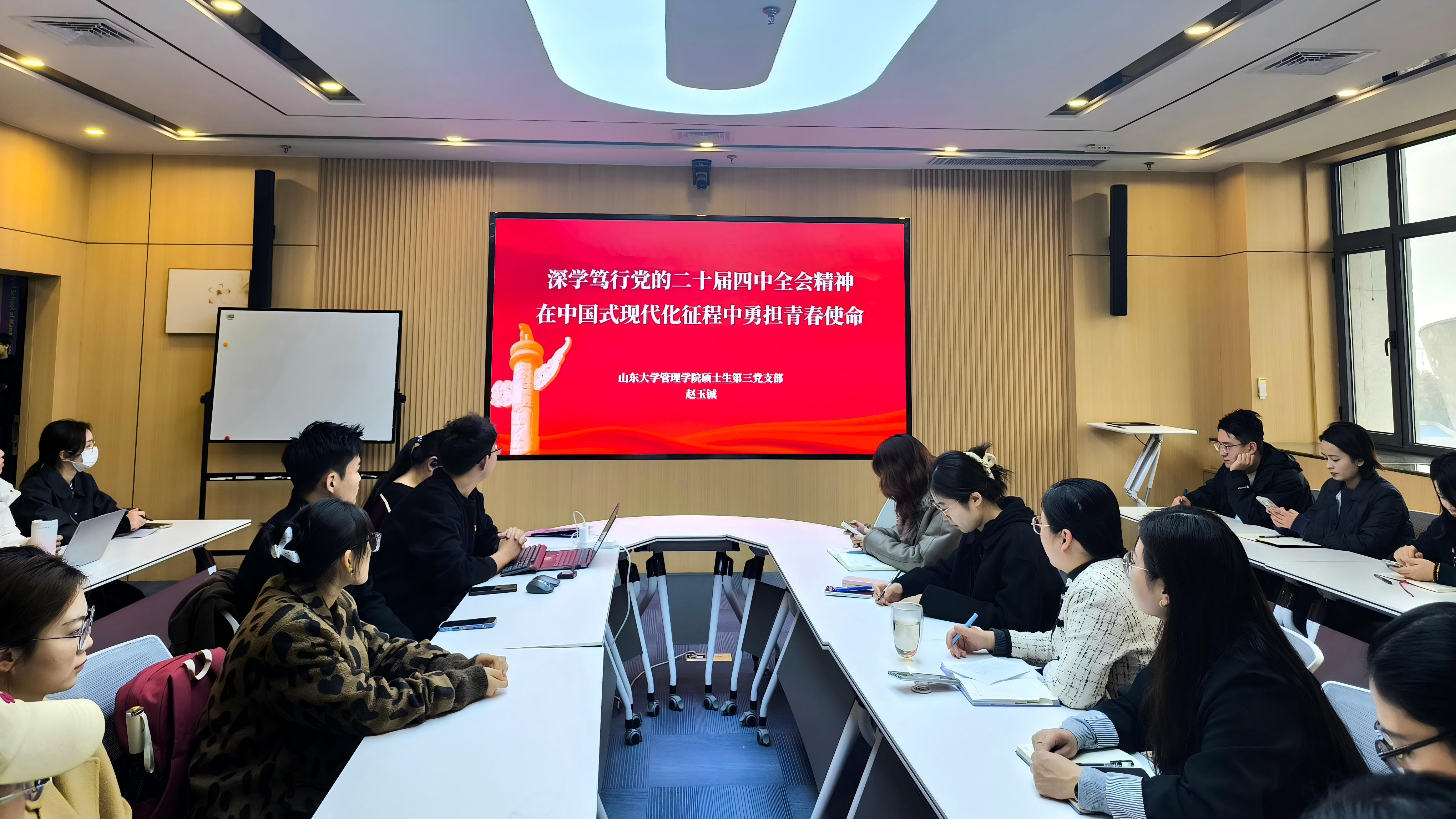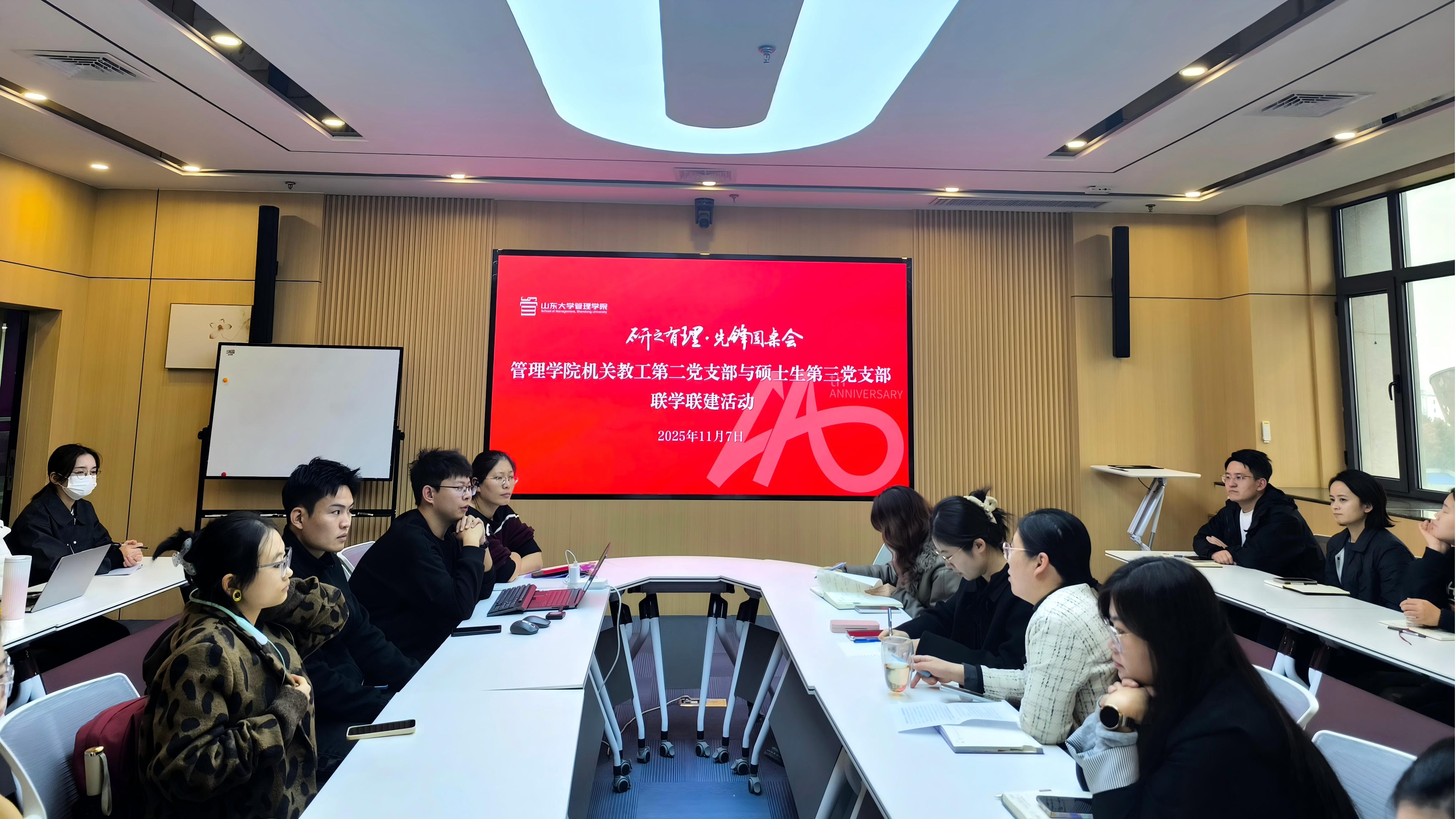 为深入学习贯彻党的二十届四中全会精神,切实把支部党员思想和行动统一到党中央决策部署上来,管理学院机关教工第二党支部与硕士生第三党支部举办“研之有理·先锋圆桌会”联学联建主题党日活动。活动由硕士生第三党支部书记赵玉铖主持。
