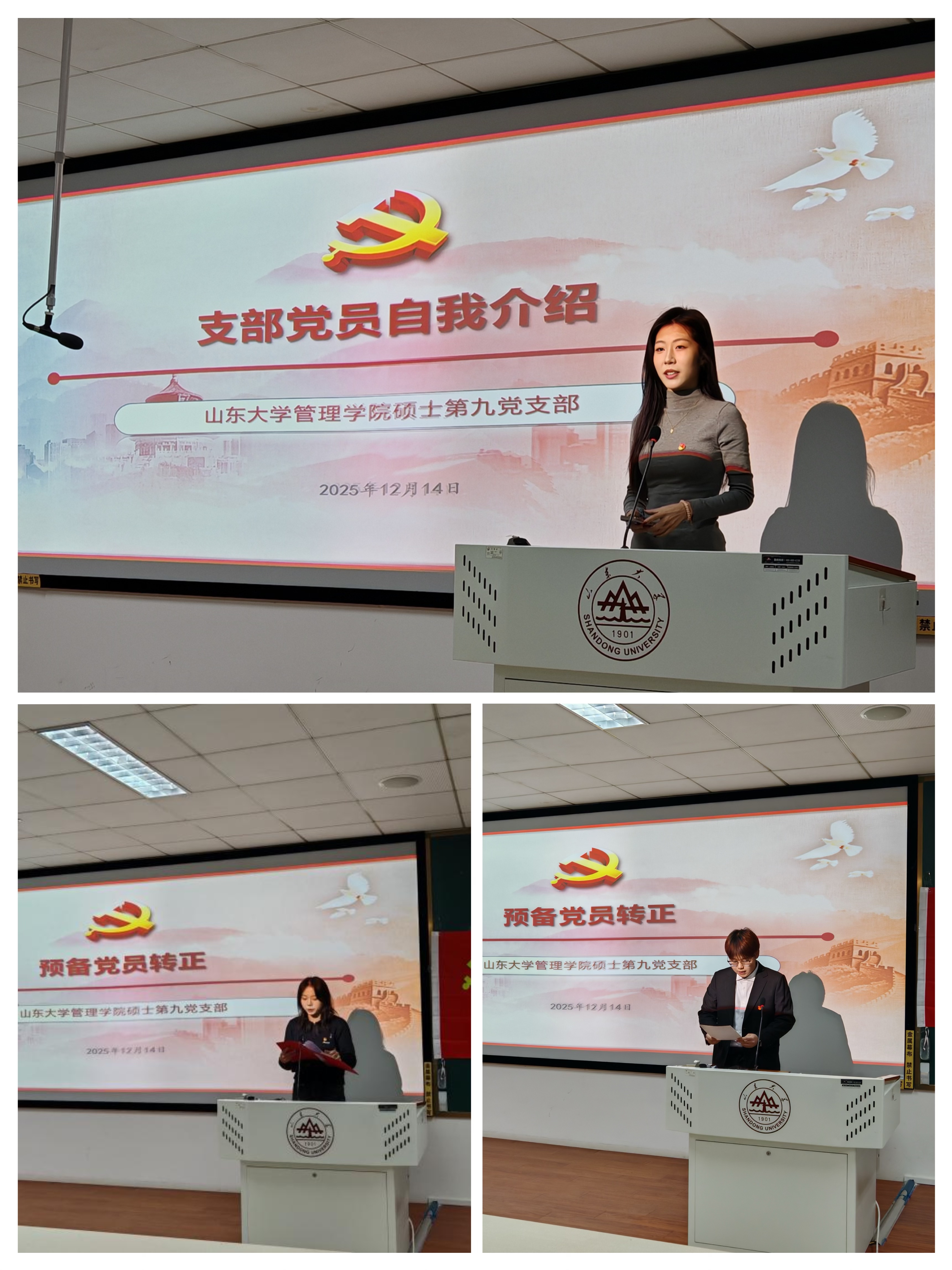为进一步加强学生党员的党性修养和时代使命感,12月14日晚,管理学院硕士生第九党支部于法新楼111室召开预备党员转正大会暨主题党日活动。支部全体成员参会,会议由组织委员掌雯婷主持。